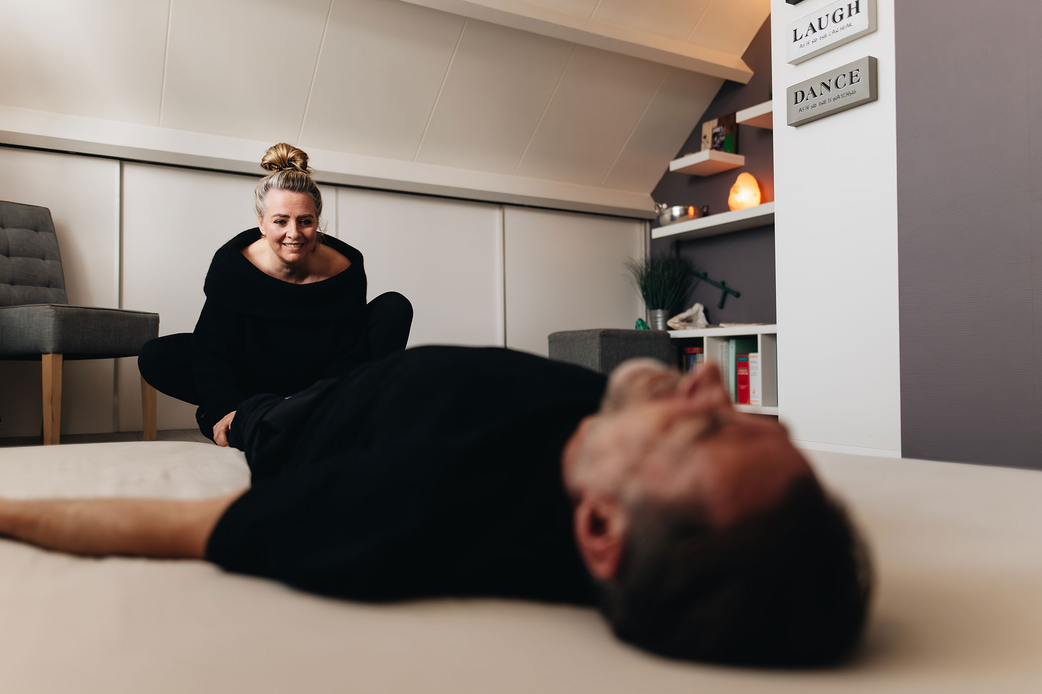 Met behulp van mijn handen, duimen, ellebogen en soms knieën of voeten oefen ik gerichte druk uit op deze meridianen. Niet om ergens hard doorheen te duwen, maar om aanwezig te zijn op de plek waar weerstand zit. Door gerichte druk en aandacht kan vastgezette energie weer in beweging komen en ontstaat er ruimte voor herstel.