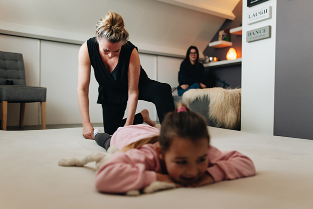 Met behulp van mijn handen, duimen, ellebogen en soms knieën of voeten oefen ik gerichte druk uit op deze meridianen. Niet om ergens hard doorheen te duwen, maar om aanwezig te zijn op de plek waar weerstand zit. Door gerichte druk en aandacht kan vastgezette energie weer in beweging komen en ontstaat er ruimte voor herstel.